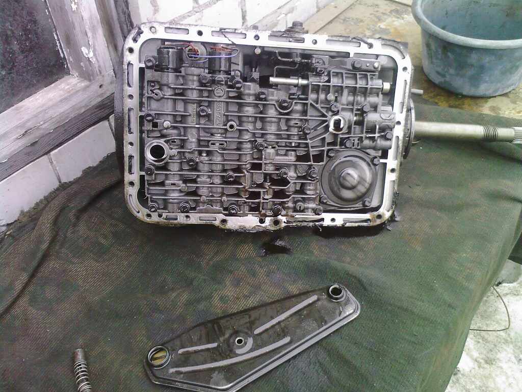 Снимаем хвост.На нём остаётся фиксатор стояночного положения(паркинга),который фиксирует то зубчатое колесо.А также видим на валу один из самых главных датчЕГов-центробежный.В зависимости от скорости тот пятачёк с помощью центробежной силы перемещается,меняя при этом пропускную способность соответствующего канала и конечно же давление в магистрали.